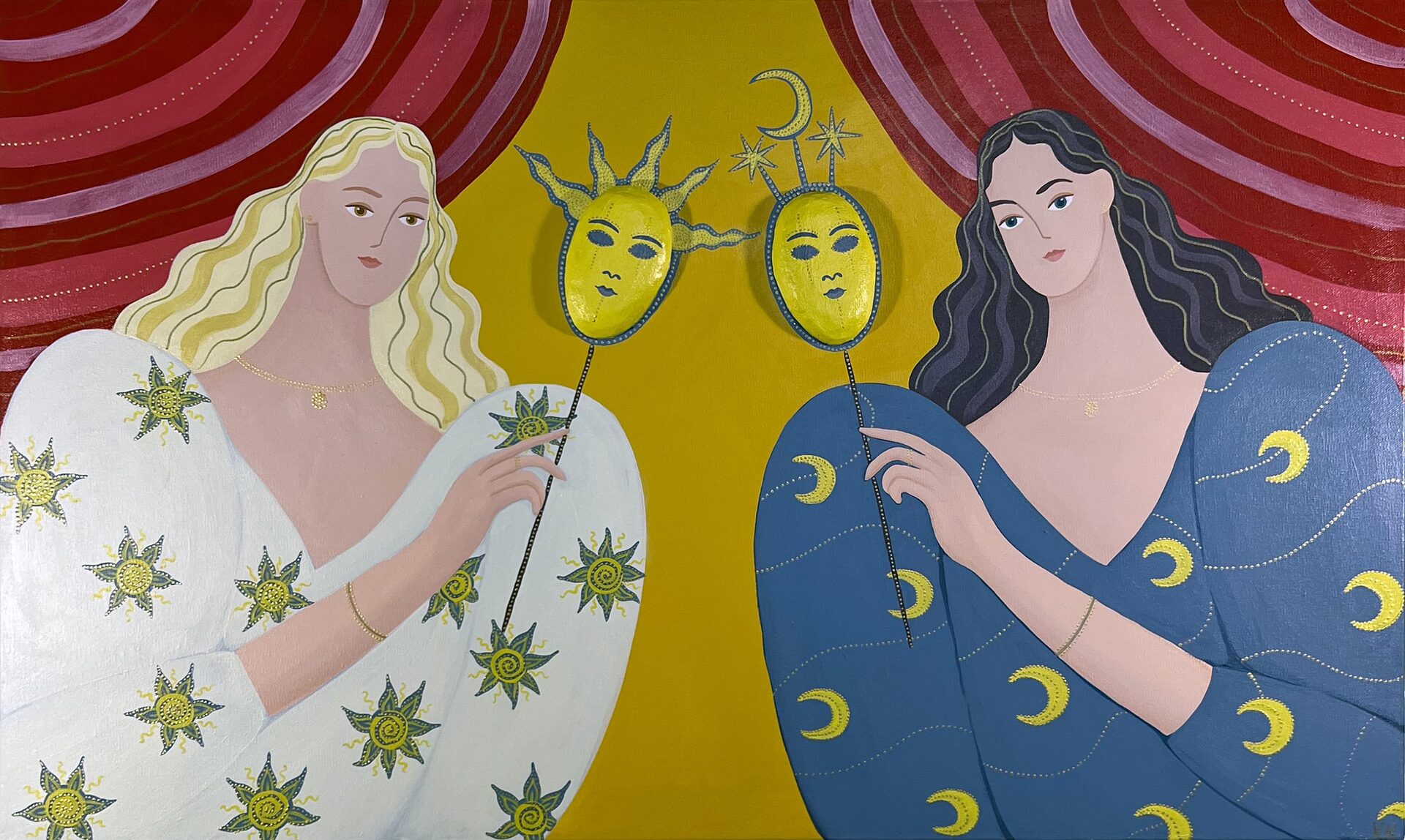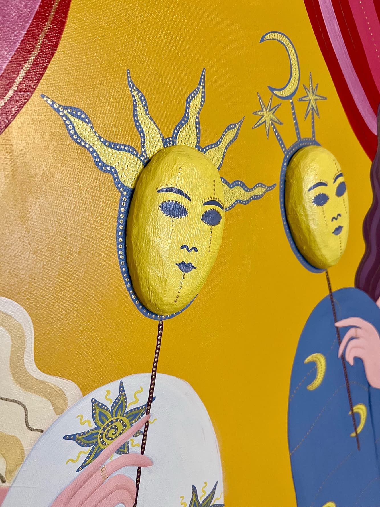 Размер: 60*100 см Материалы: холст, акриловые краски, золотой контур, объемные элементы Оформление: холст на подрамнике Год создания: 2025 г.